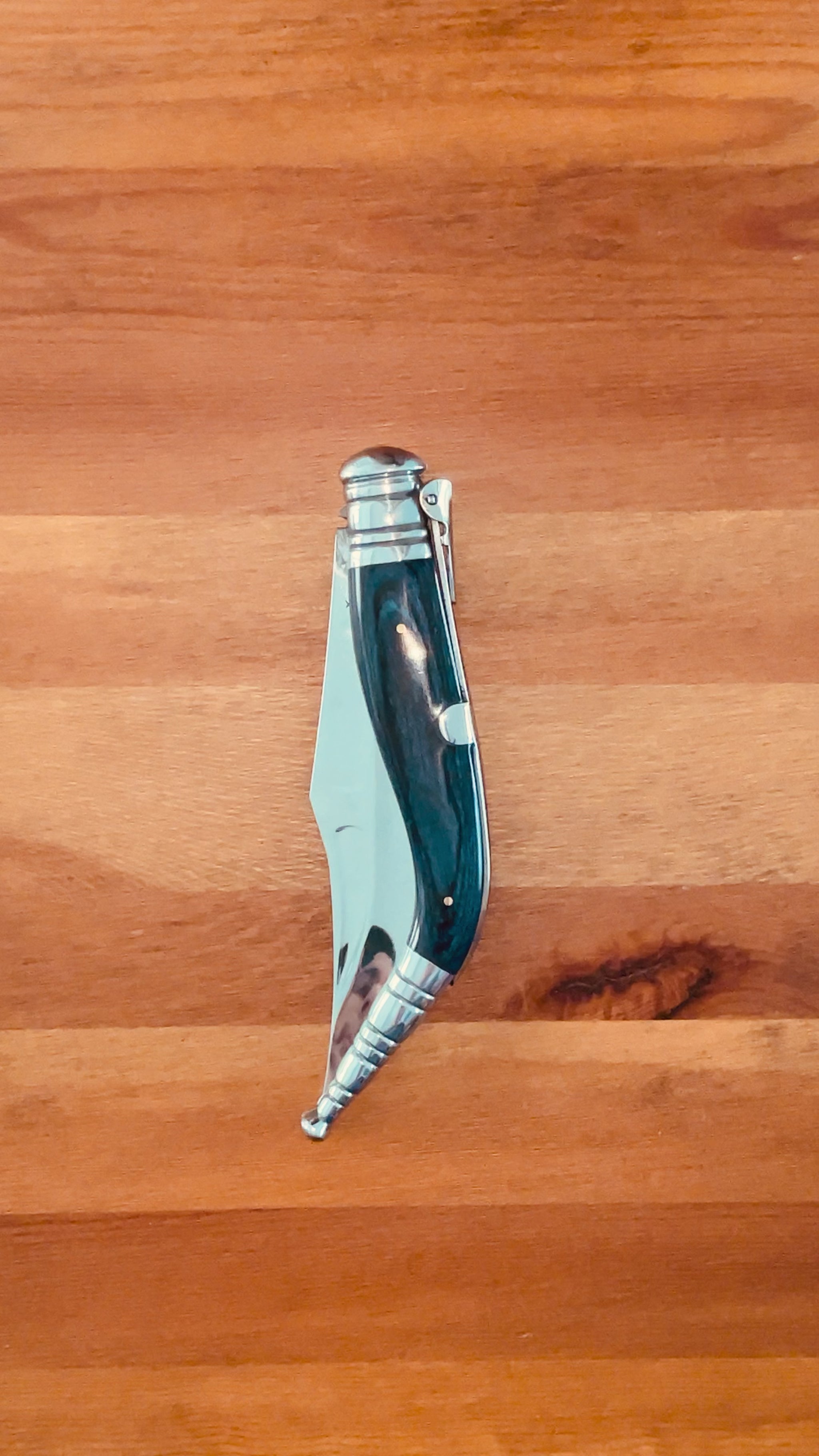 6.5" Spanish Navaja Sevillana Pocket Knife Blue Stamina Scales with Ratchet. From Spain.